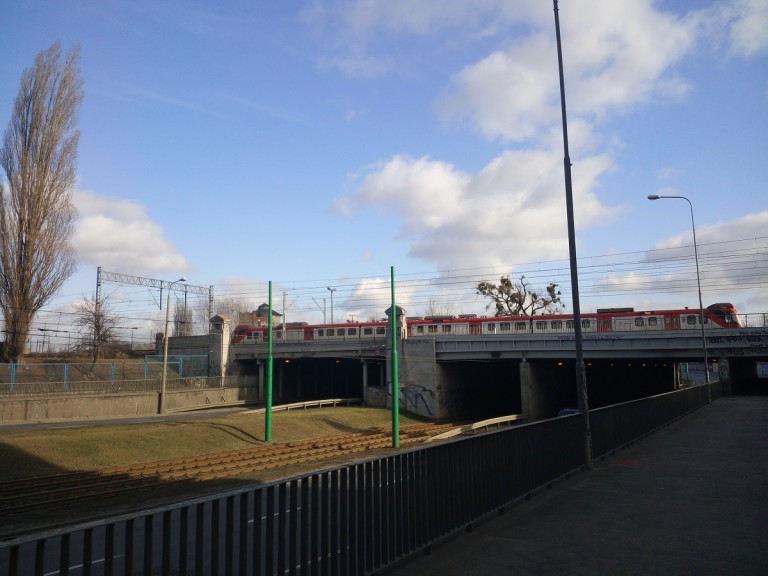 Poniżej dwa odcinki z mapy, na których zaznaczony jest trening zapisany przez Endomondo. Na niebiesko trasa wyznaczona przez GPS w smartfonie, a na czerwono zaznaczyłem jak faktycznie biegłem na tych odcinkach.